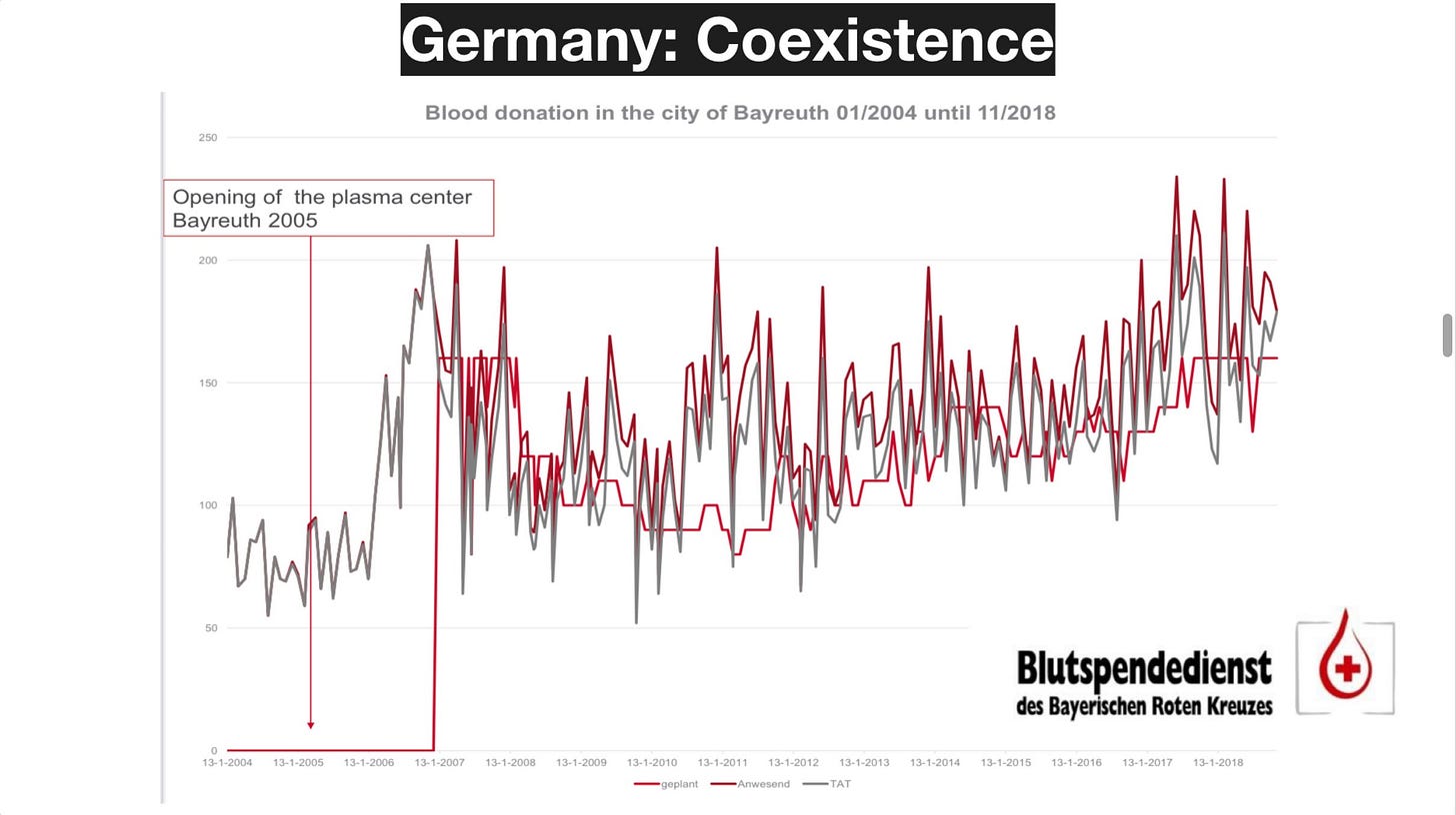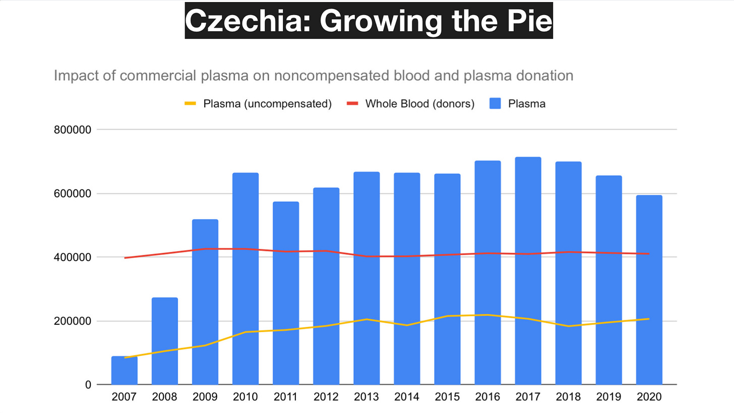 Ο Milan Maly επέστησε την προσοχή μου σε μια τσεχική μελέτη του 2019 που παρακολούθησε μεμονωμένους δότες στην πόλη του Μπρνο, όπου λειτουργούσε μία κρατική υπηρεσία αιμοδοσίας και ένας ιδιωτικός φορέας συλλογής πλάσματος προς κλασματοποίηση.