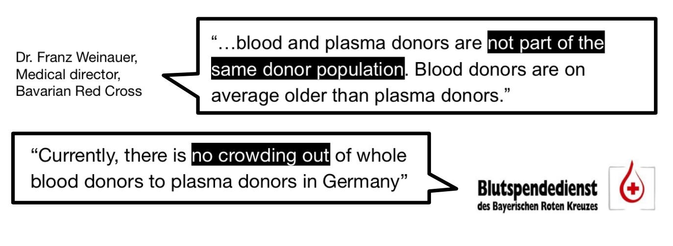 Τα πιο πρόσφατα στοιχεία που έχουμε από το Ινστιτούτο Paul Ehrlich (ο γερμανικός ΕΟΦ) δείχνουν ότι οι εθελοντικές δωρεές πλάσματος αυξήθηκαν κατά 12,7% από το 2022 έως το 2023. Αυτό έβλαψε τις εθελοντικές δωρεές αίματος χωρίς αμοιβή;