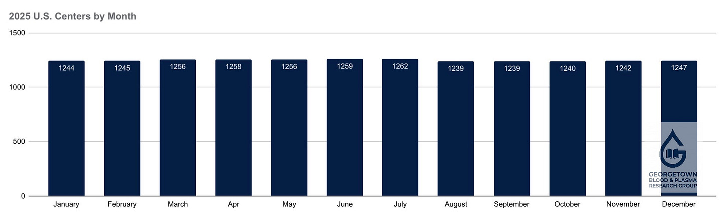 While some centers still use prior-generation machines, the vast majority (including the “Big Five” of CSL, Grifols, Takeda, Octapharma, and Kedrion which together operate 90% of U.S. plasma centers) have rolled out the new machines in 2025.