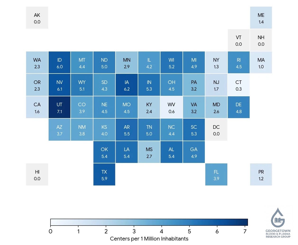 As of December 31, the U.S. has a plasma center for 276,198 people. But there are significant regional differences.