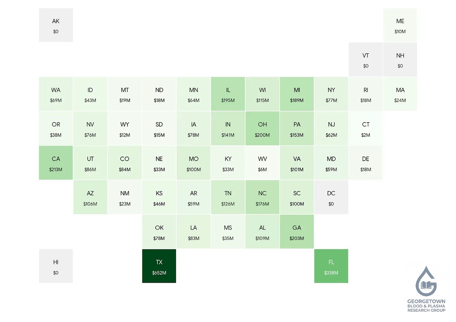 The 2025 collection estimates suggest Americans rolled up their sleeves to give plasma more than 75 million times. That means the industry injected more than $4.7 billion dollars into the pockets of American households through donor compensation fees (averaging $65 per donation).