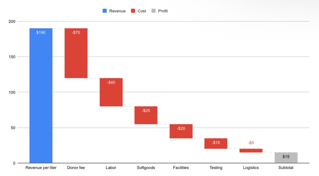 The unit economics are much more complicated, but we can look at the economics of independent plasma companies. Their business is to sell plasma to fractionators, not to make medicine from the plasma.