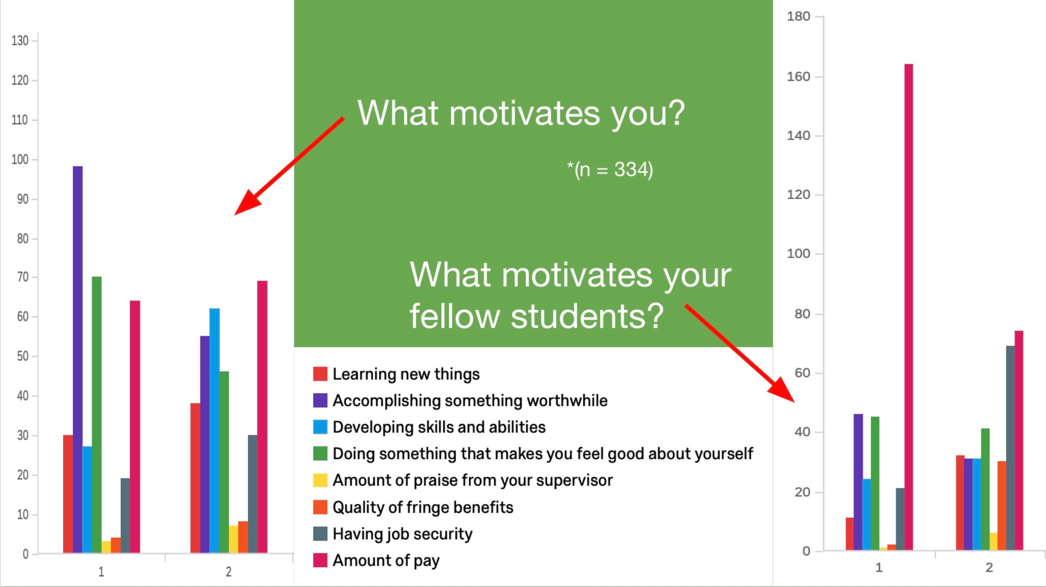 What motivates me? Doing something worthwhile. What motivates you? Money.