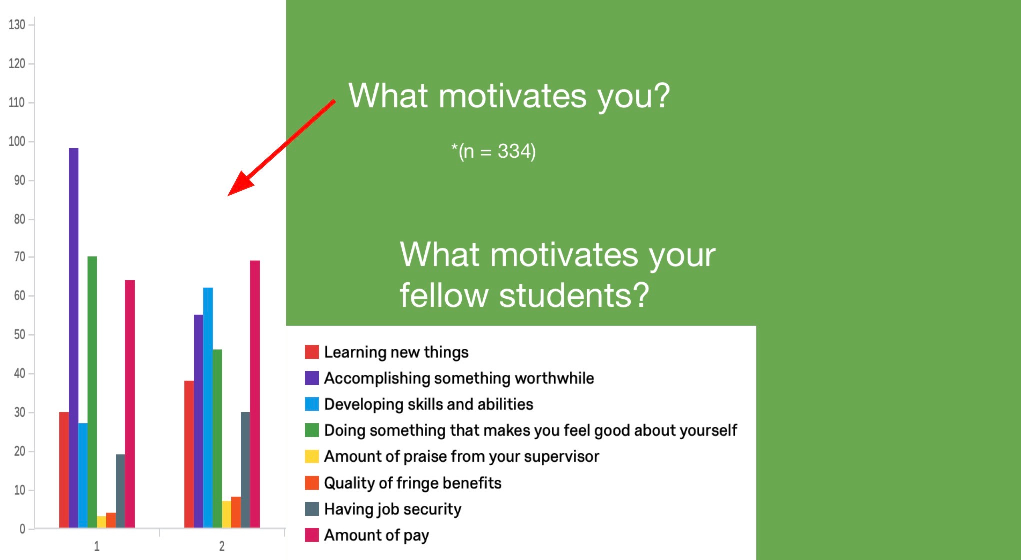 My students tell me that what motivates them the most is “Accomplishing something worthwhile,” and “Doing something that makes you feel good about yourself.”
